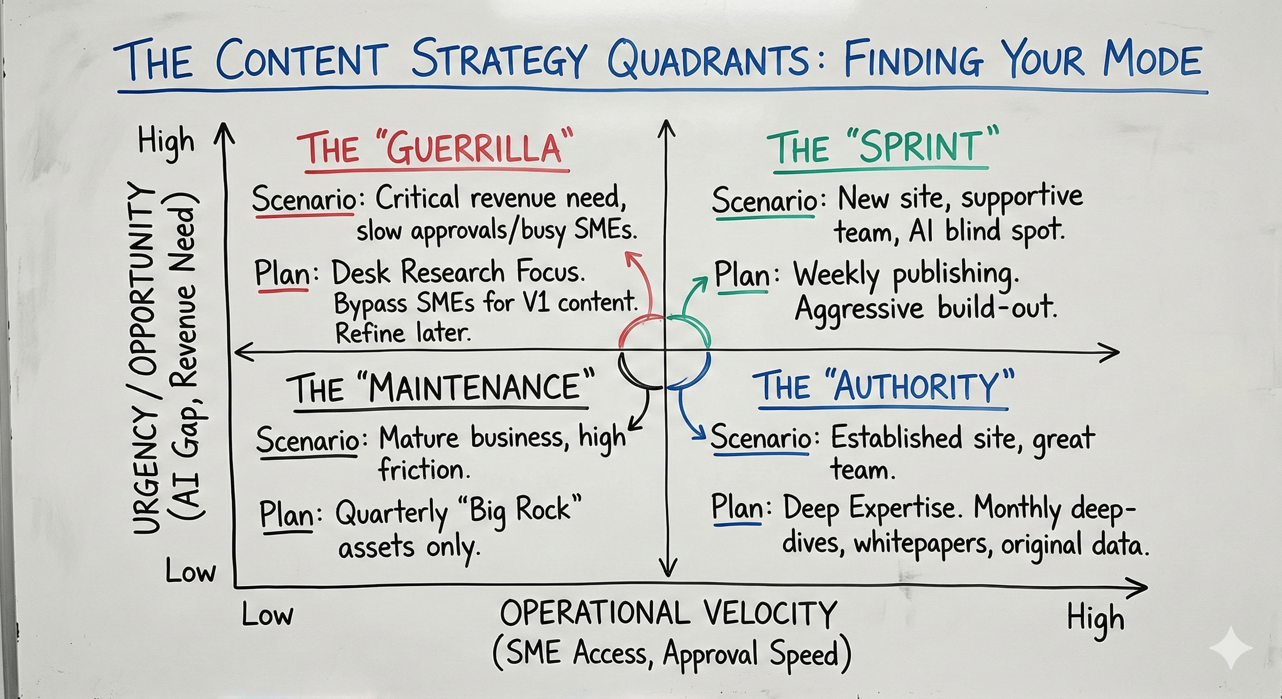 If you have high revenue urgency but low SME availability, we need to run a "Guerrilla Sprint" using mostly desk research to get you visible.
