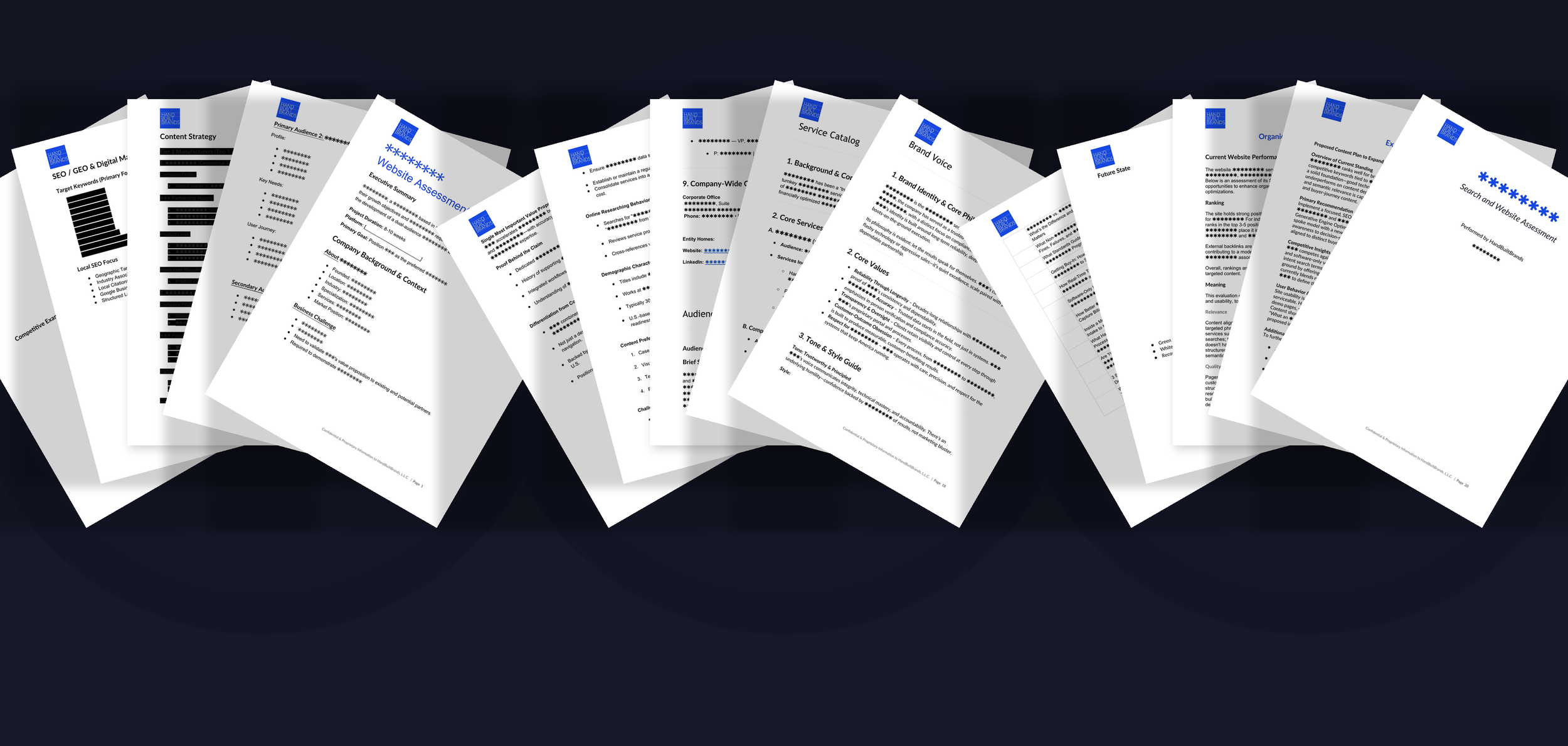 Product/Service Catalog: We document exactly what you sell and, more importantly, your differentiation. This informs the site structure.